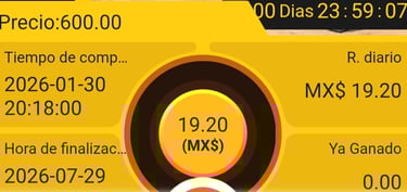 Los montos de inversión, plazos y ganancias son estipulados con el broker que se maneja en esta pagina, es nuestro trabajo garantizar esos montos de rendimiento como un mino, sin contar así mismo futuras ganancias mayores a ellos debido al incremento de rendimientos, con esto garantizamos mantenernos en el mercado con una amplia garantía y gama de oportunidades a nuestros clientes, así mismo la inversión inicial sera devuelta a termino del plazo elegido.